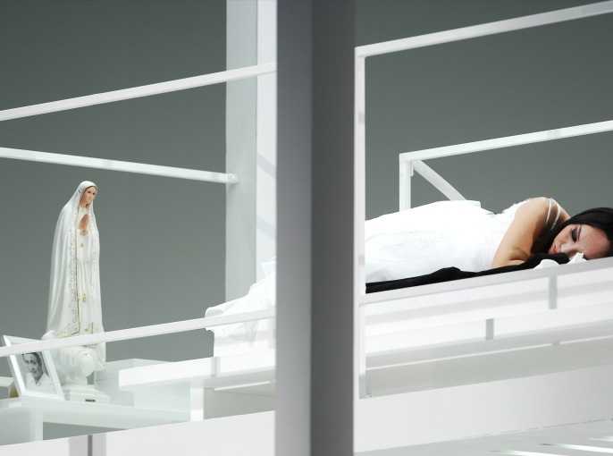 Butterlfy, who due to her marriage with a foreigner is repudiated by her family sees no way out of her misery; she commits hara-kiri. The play is located in a modern-day Japanese house which structure will reveal more and more during the play. By removing translucent screens -a quote on traditional Japanese Shoi- the house turns naked. A metaphor for Butterflies’ obliteration.